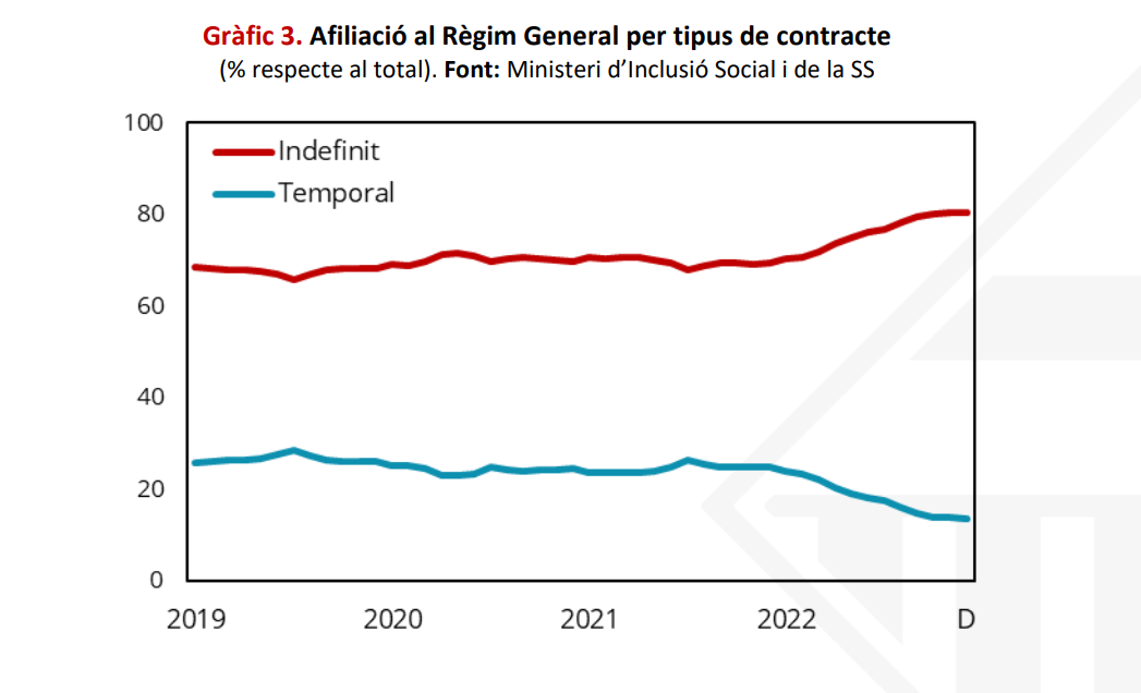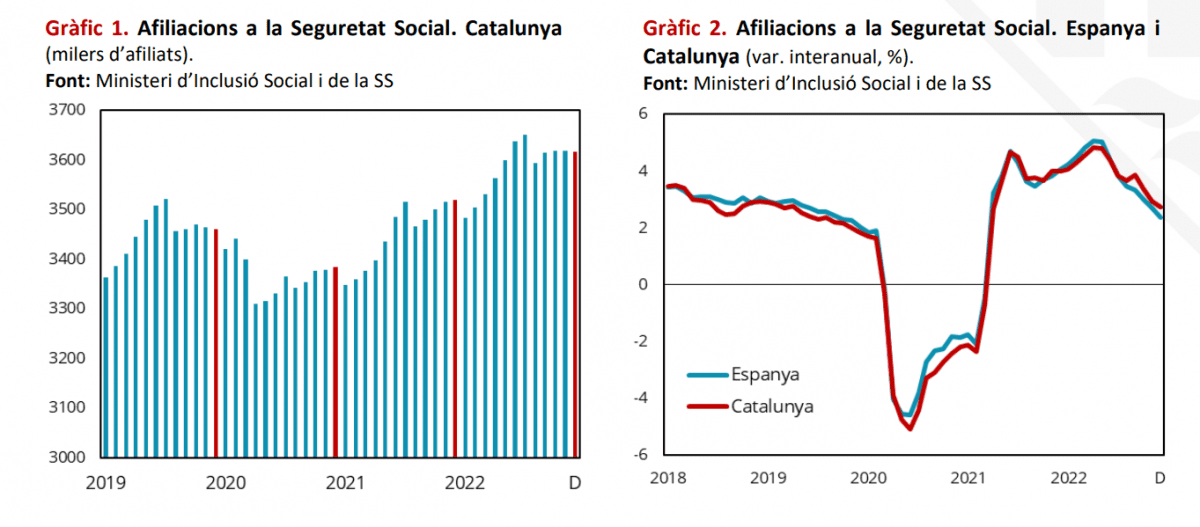 Los últimos datos del año confirman la buena dinámica del mercado laboral de Catalunya a lo largo de 2022. Este hecho y la continua reducción en la temporalidad laboral representan un factor de apoyo para la economía catalana.